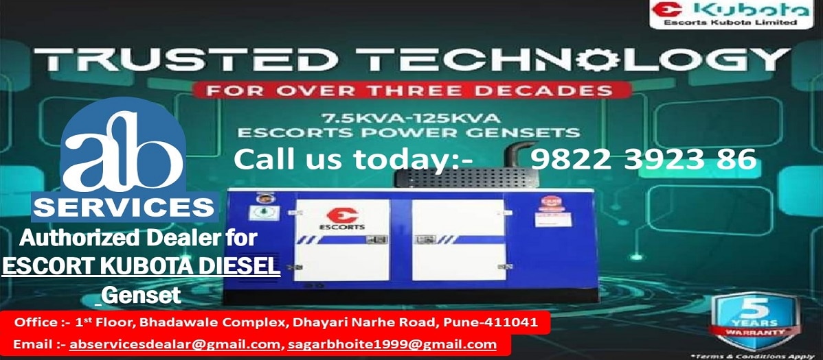 WE ARE AUTHORISED DEALER FOR ESCORT KUBOTA DIESEL GENSET. WE PROVIDE 3S SERVICES AS - SELL OF ESCORT KUBOTA DIESEL GENSET, SELL OF ORIGINAL SPARE PARTS. AND 24 HRS SERVICING FOR GENSET. We are located at 1st Floor, Bhadawale Comp...Read More